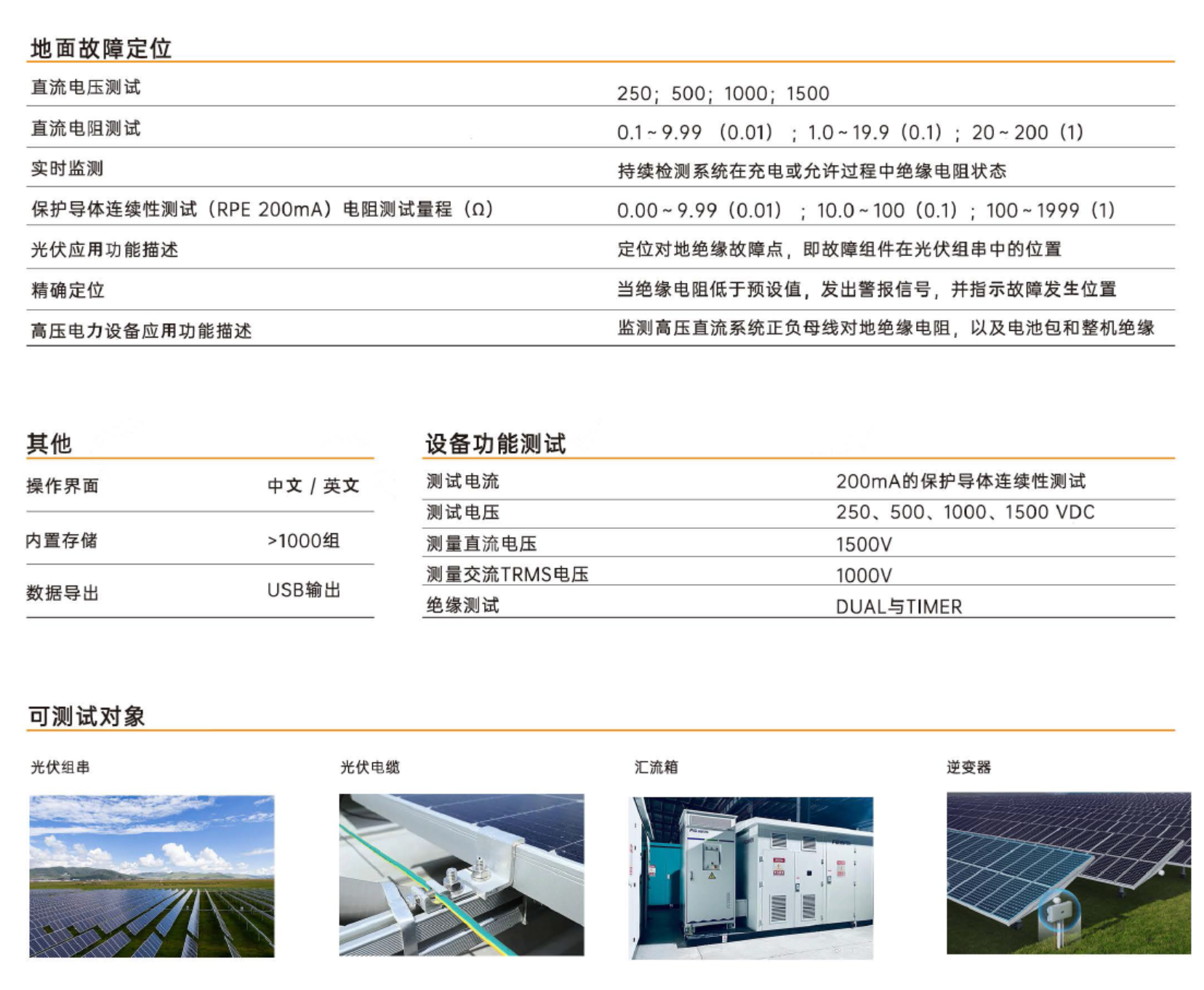 光伏电站系统的电气安全测试与高压电力设备的绝缘测试,精准确定位到光伏系统中的绝缘故障点,有助于运维人员快速进行维修或更换,减少系统停机时间。
