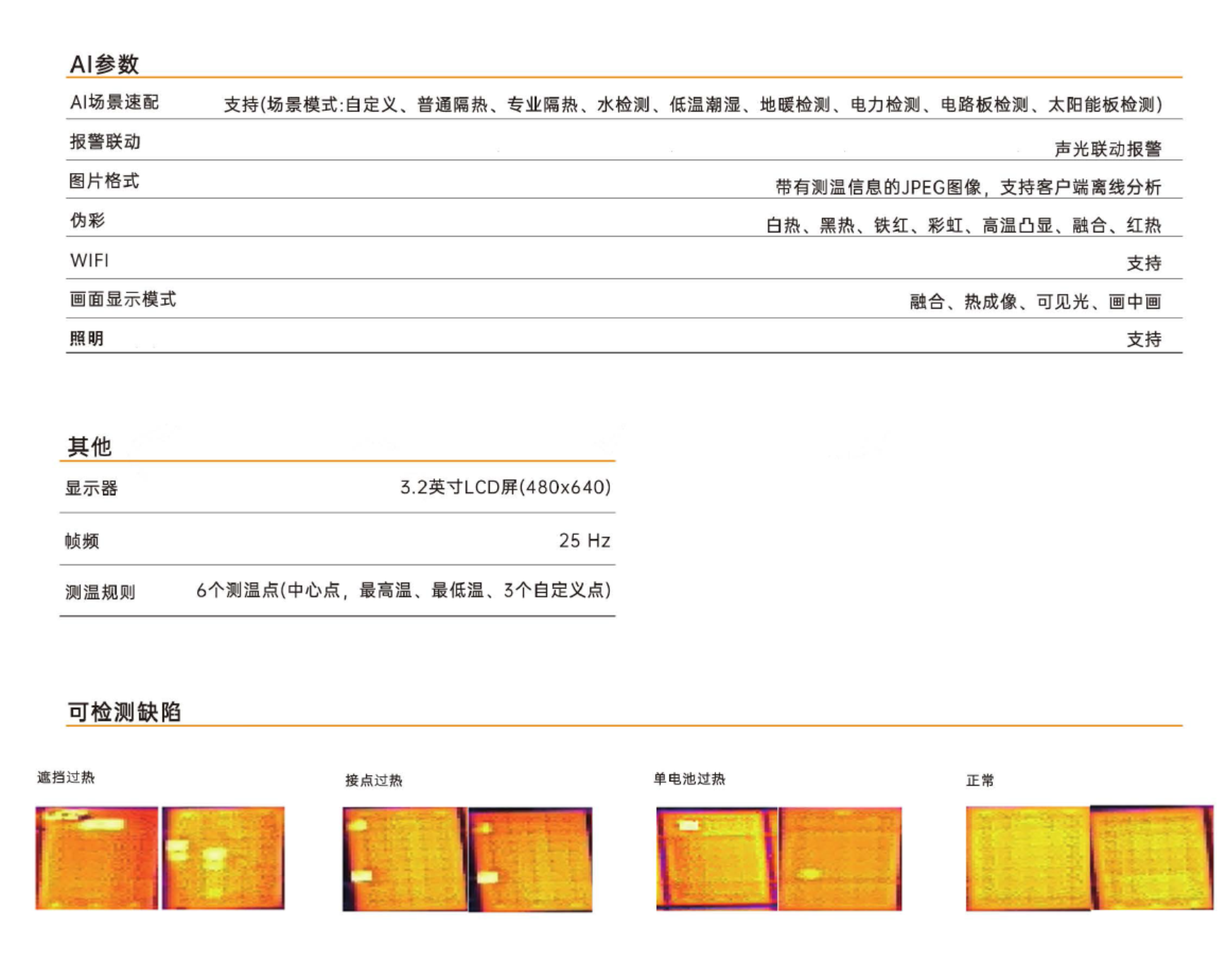 可间隔自动拍照与阀值温度预警拍照;